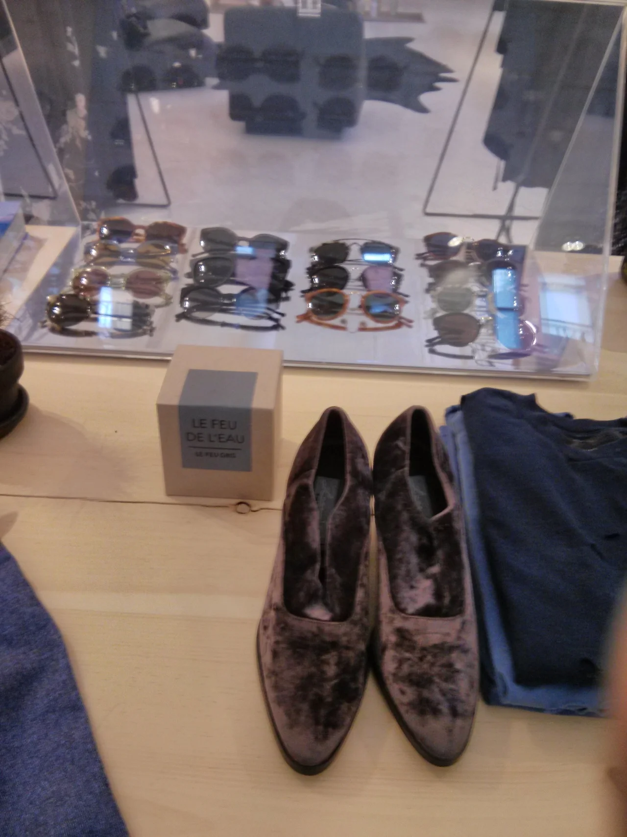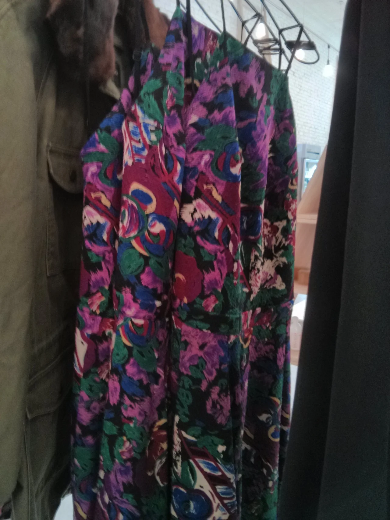 We perused the store, gawked at the recycled materials from chop shops in L.A transformed into edgy, cool and chic ready-to-wear pieces. The styles we liked best were the retro sunglasses, the jersey blouses (football anyone?), and a long, grape-colored, graphic dress.